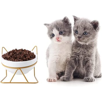 Tazón de cerámica personalizado para mascotas, tazón de agua potable con diseño de orejas, soporte de Metal