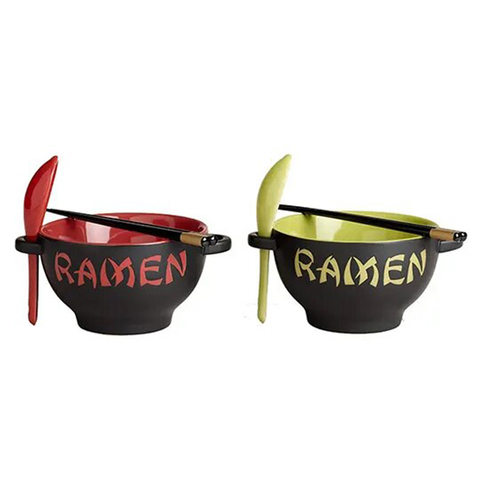 Japanische rote und grüne Keramik-Ramen-Schüssel